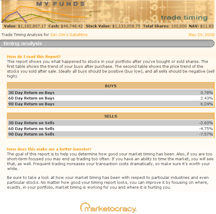 For that Marketocracy has been tracking SZDM's timing record. Marketocracy's numbers show that the buy/sell choices have been pretty consistently good on all time-frames (screenshot):