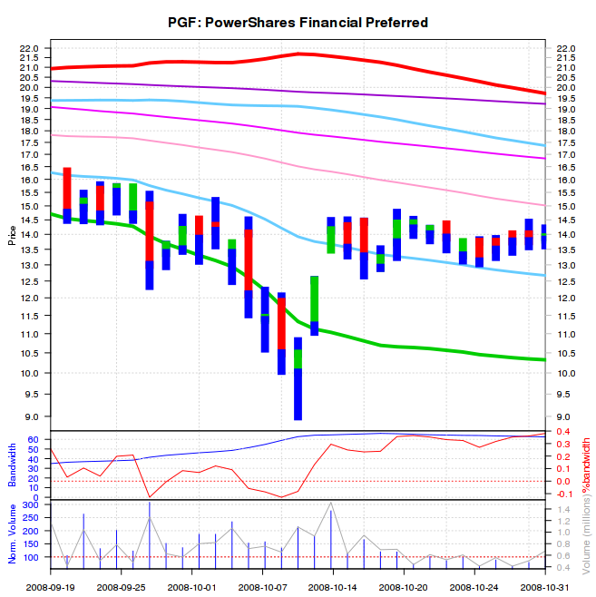 Finally, my current thinking is that we are doing a wide-range (20% !) sideways move with the S&P 500 oscillating between ~850 and ~1050. The short term (till christmas) path of least resistance is now up. I wouldn't be surprised to see the SPY back at about 1100 before long. I'm considering opening some market-neutral trades (half long half short) once the shorts like SCC get back to earth, trade at lower premium from their real NAVs and reach lines of stronger support. For now, as credit-markets are showing clear signs of of thawing, spreads have narrowed sharply from just two weeks ago, and Oil prices keep breaking new lows, I'd just sit back and enjoy the short term rallies when they come.
