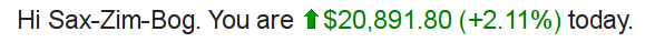 UpDown's registered user base has been rising fast. They already have 31,113 accounts. My account advanced by 5,264 slots this week to finish 4252 out of 31113. The current precentile rank is 13.6%, the top ranking members seem to be trading continuously troughout the day, something I cannot afford nor want to do, so I'd be happy to get to the top 5% percentile or there abouts and stay there.