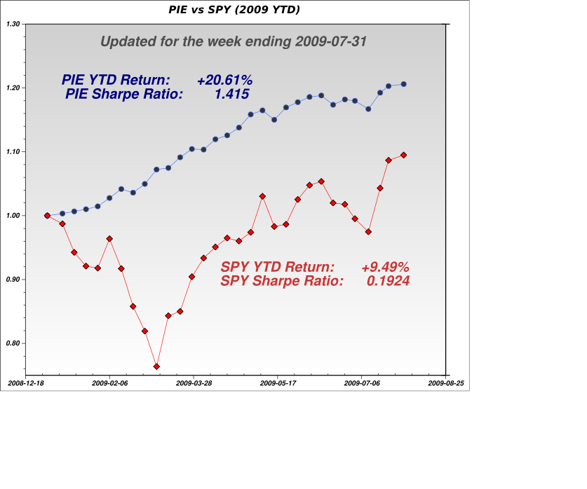 July 31, 2009: PIE vs SPY - July 2009 summary